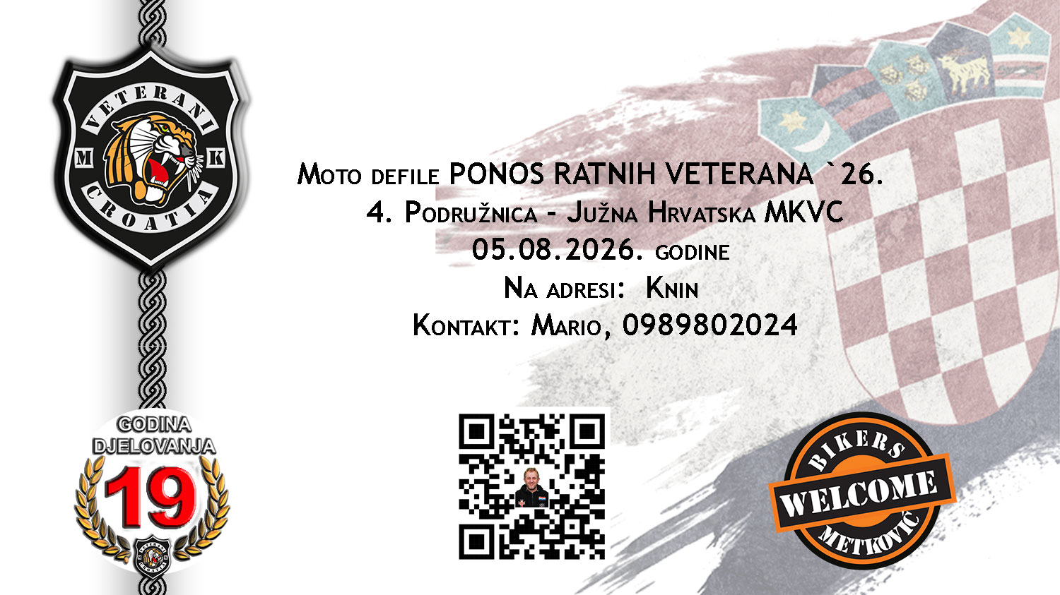- 11:45 - 13:30 - moto maraton Ponos ratnih veterana `25. - Vodice - Knin (okupljanje je na benzinskoj postaji Lukoil, Drniška ul. 3, Knin)